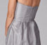 Fitted bodice, strapless sweetheart neckline with gathering. Full pleated party skirt. Back zip. 23" skirt with pockets. Shown in gunmetal refined silk shantung.